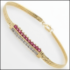 A luxurious 8.2-inch designer bracelet featuring AAA-grade garnets and sparkling accent diamonds, crafted in 18K yellow gold over sterling silver — timeless beauty and elegance in every detail.