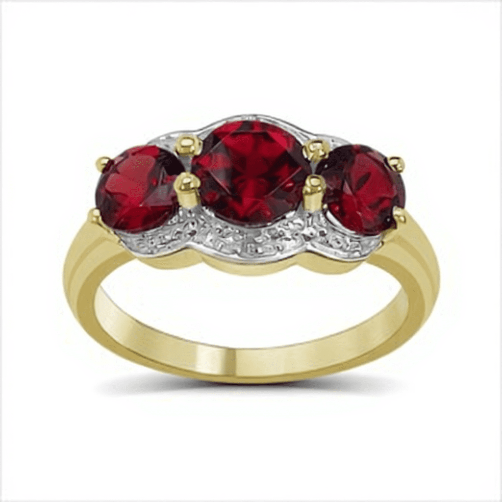 Crafted for the modern woman, this luxurious ring combines 2.3 CTW AA-grade garnet with 0.010 CTW of fine diamonds, offering a perfect balance of richness and sparkle. The garnet’s deep hue is complemented by the soft golden glow of 14K yellow gold plating over solid sterling silver (3.63 g).