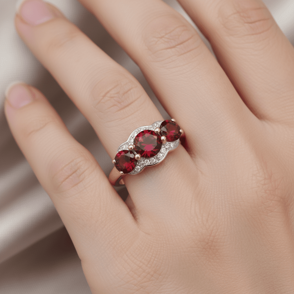 | Gemstone | Garnet (2.3 CTW, AA Grade, Round Cut), Diamond (0.010 CTW, K Color, I3 Clarity, Round Cut) |