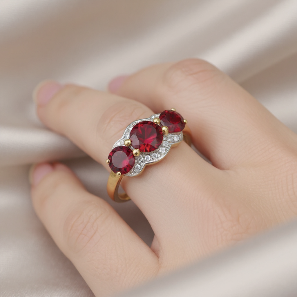 Bold yet elegant — the Crimson Gleam Ring showcases a stunning 2.3 CTW brown-red garnet surrounded by sparkling accent diamonds, all set in 14K yellow gold over solid sterling silver. A timeless size 7 designer piece that radiates warmth and sophistication.