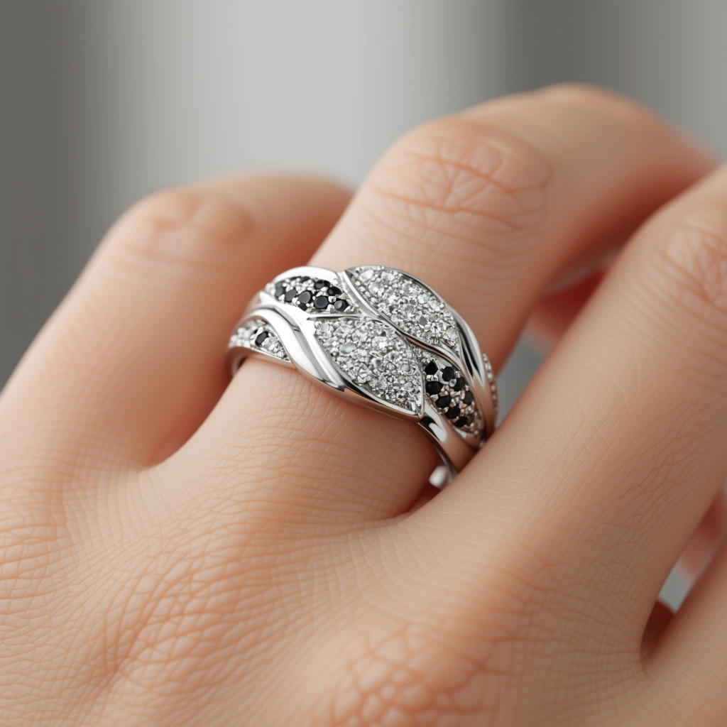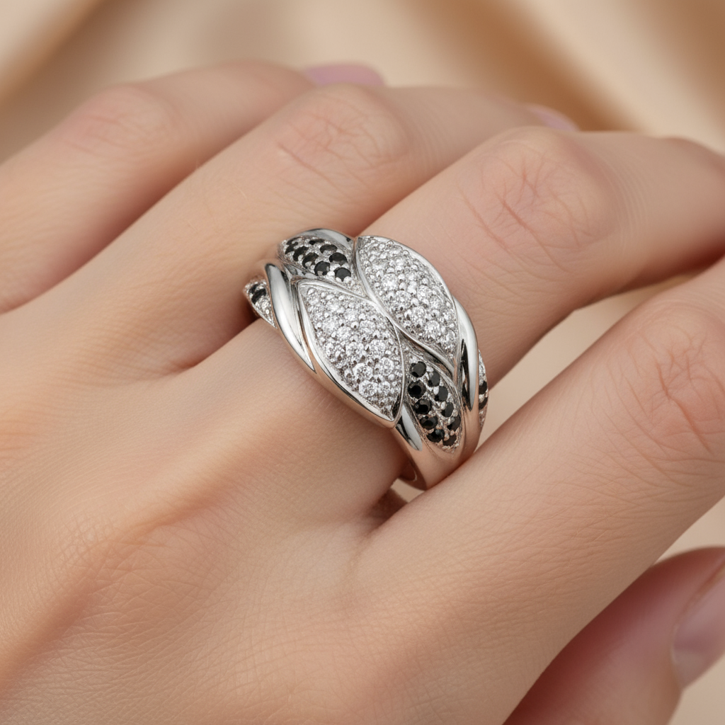 Whether worn for a glamorous night out or as an everyday signature piece, the Midnight Harmony Ring embodies elegance with an edge.