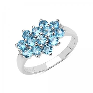 A delicate women’s designer ring featuring a 1.30 CT AAA blue topaz, accented with white topaz, set in rhodium-plated sterling silver for lasting shine and elegance.